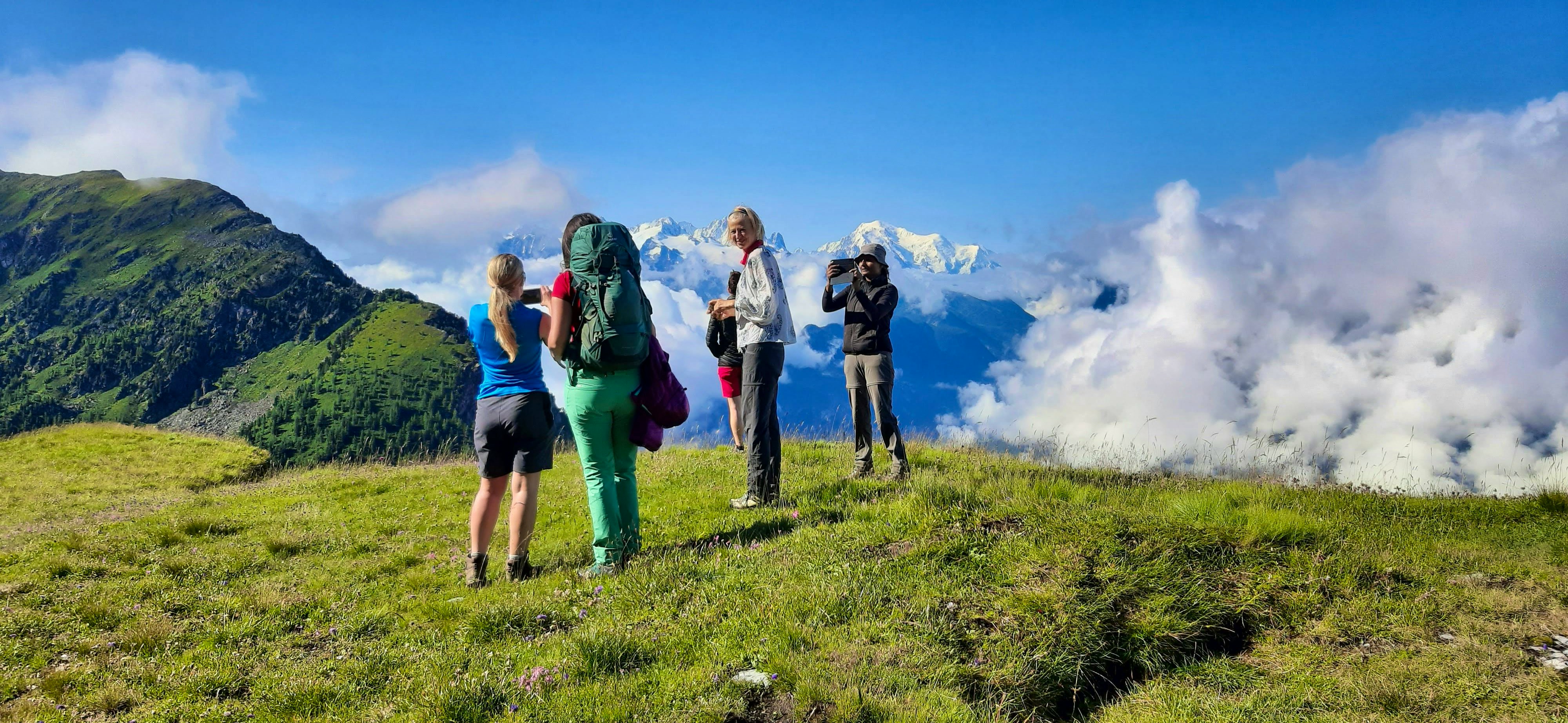 The currency used in France and Italy is Euro’s. In Switzerland, they use the Swiss Franc, chfs, but normally accept Euros at a poor exchange rate. We recommend changing your money before you arrive as it is not possible once you've left the airport. You WILL need money for lunches, drinks, souvenirs and tips . Alpine refuges do not always take cards or digital payments. We recommend: 100 euros & 150chfs per person, depending on how much you eat and drink extra. At the very least use the cash points at the airport to get Swiss Francs (chfs)